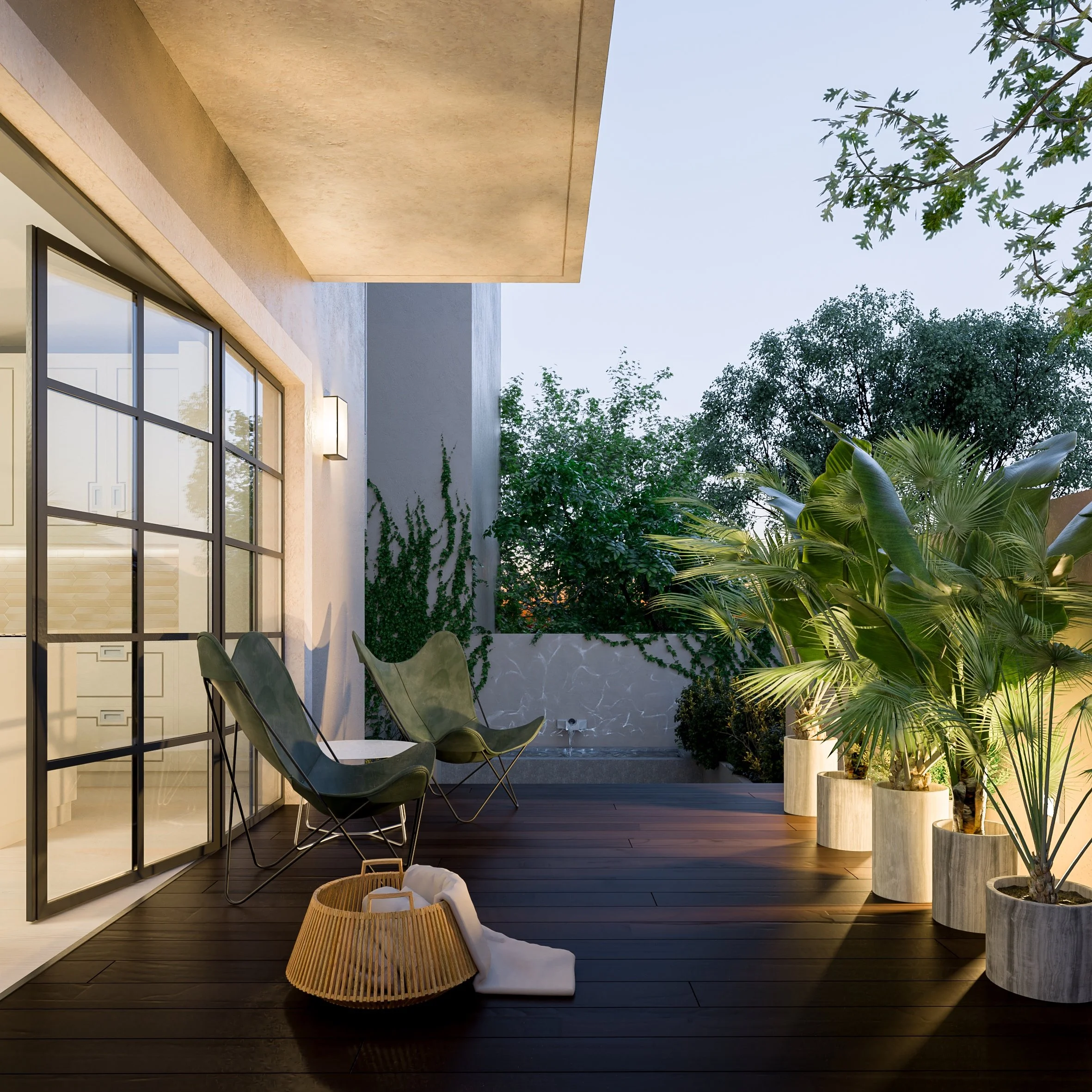 L'immeuble a également le plaisir d'offrir des espaces de jardin extérieur pour certains des appartements. Cet espace a été soigneusement conçu. Les éléments d'eau contribuent à la création d'un endroit calme et paisible au cœur de la ville, sans aucun stress, vous offrant ainsi votre propre petit îlot de tranquillité.